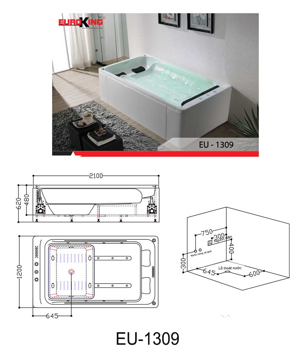 Bồn tắm massage cao cấp EU-1309 là sản phẩm ứng dụng rất nhiều công nghệ hiện đại bậc nhất trong sản xuất thiết bị phòng tắm hiện nay.