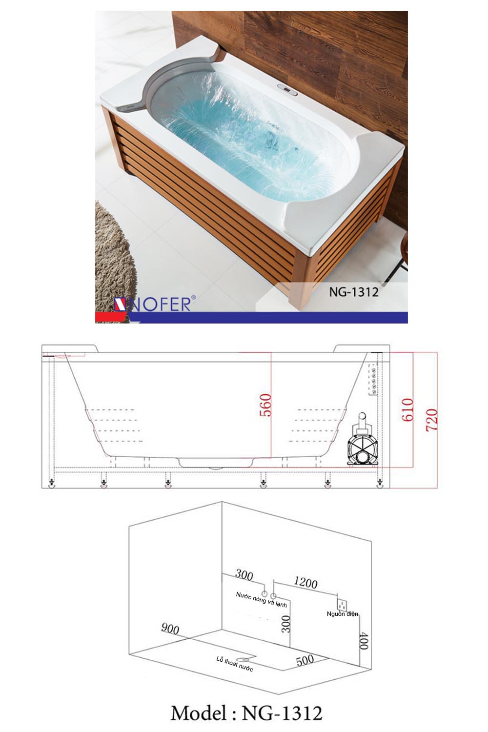 Bản vẽ kĩ thuật bồn tắm massage Nofer NG-1312: