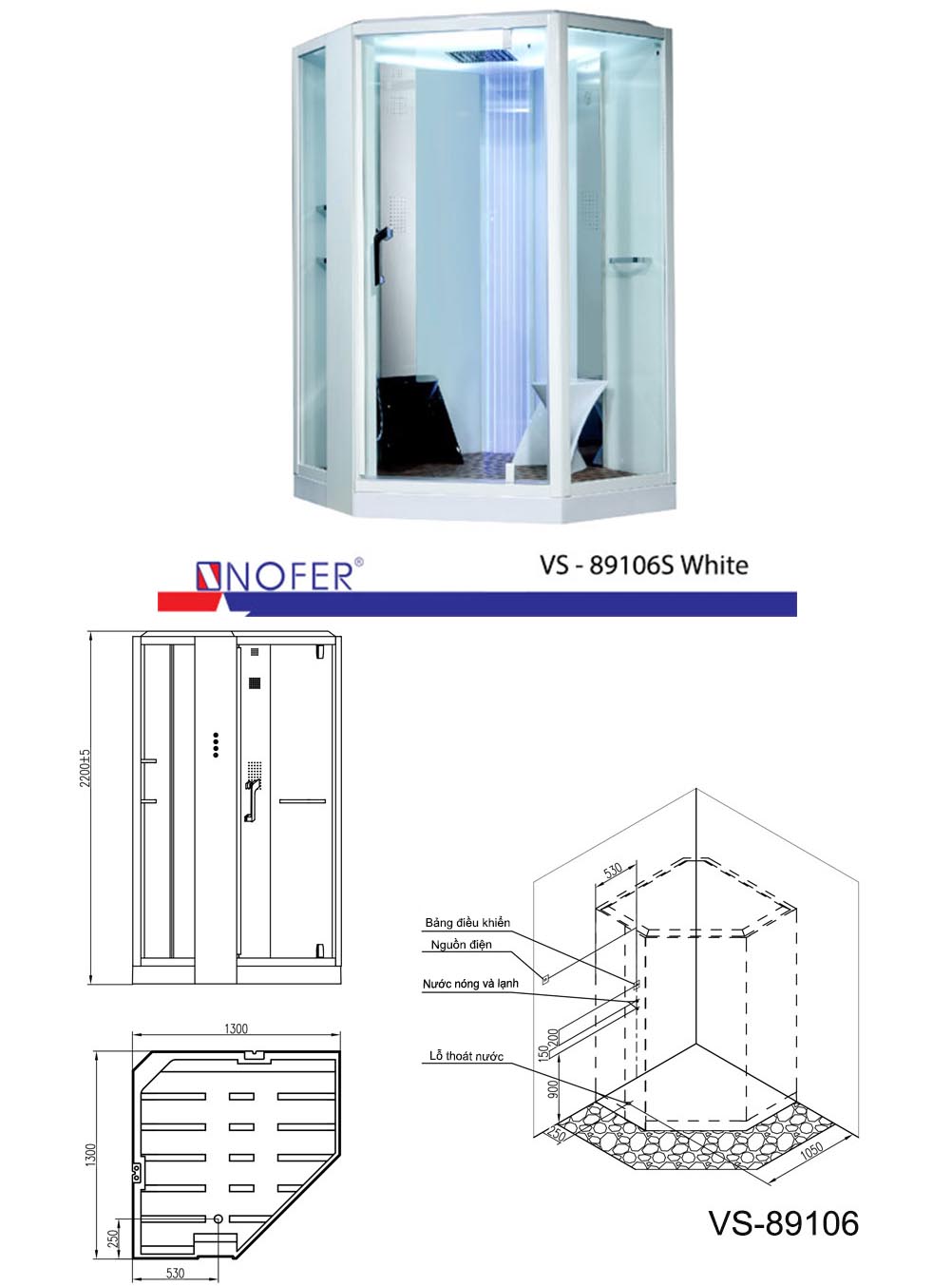 Bản vẽ kĩ thuật Phòng xông hơi ướt Nofer VS-89106S White:
