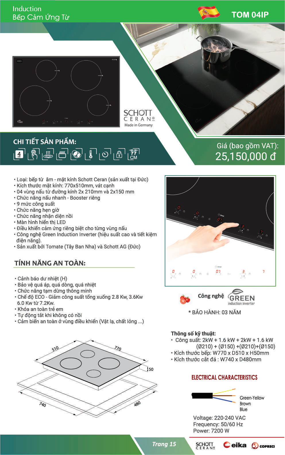 THÔNG SỐ KỸ THUẬT BẾP TỪ TOMATE TOM 04IP