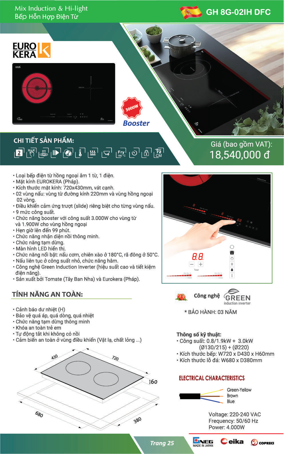 THÔNG SỐ KỸ THUẬT BẾP ĐIỆN TỪ TOMATE GH 8G-02IH DFC