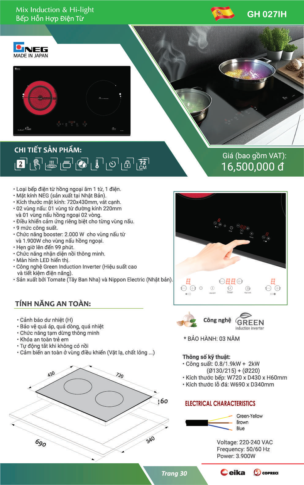 Bếp TOM GH 027IH là dòng bếp hỗn hợp điện từ dạng Horizontal, với 02 vùng nấu. Bên cạnh 01 vùng nấu từ, bếp cũng có 01 vùng điện với 02 vòng nhiệt đốt nóng linh hoạt sử dụng thanh đốt chịu nhiệt.