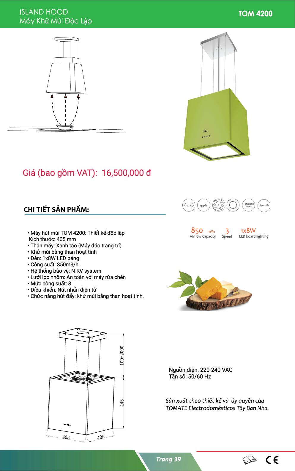 Thông số kỹ thuật máy hút mùi Tomate TOM 4200