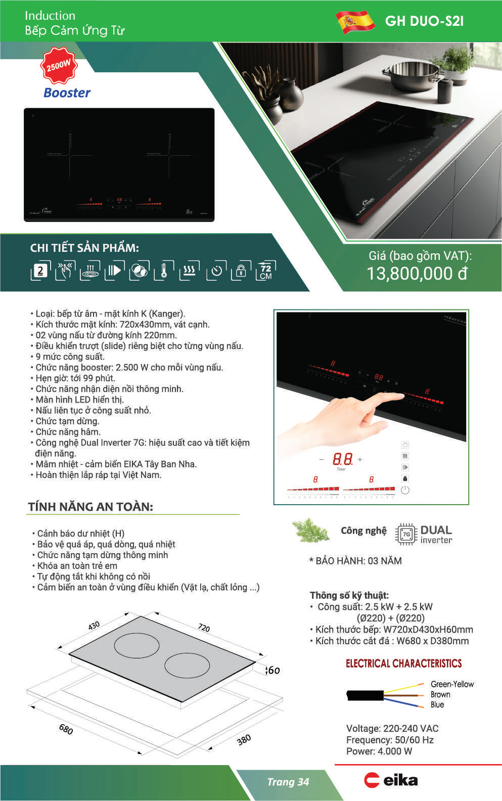 * Thông số kỹ thuật bếp từ Tomate GH DUO-S2I