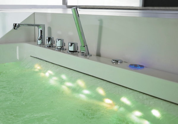 Rãnh nước tạo thác được thiết kế theo chiều dài của bồn. Chắc chắn, chúng ta sẽ cảm thấy mãn nhãn với vẻ đẹp của thác nước nhân tạo này. Bên cạnh đó, thác nước này còn có tác dụng tạo lực chuyển động cho bồn nước bên dưới. Bồn có nút điều chỉnh thác nước, bạn có thể tuỳ ý điều chỉnh lực thác nước theo ý mình.