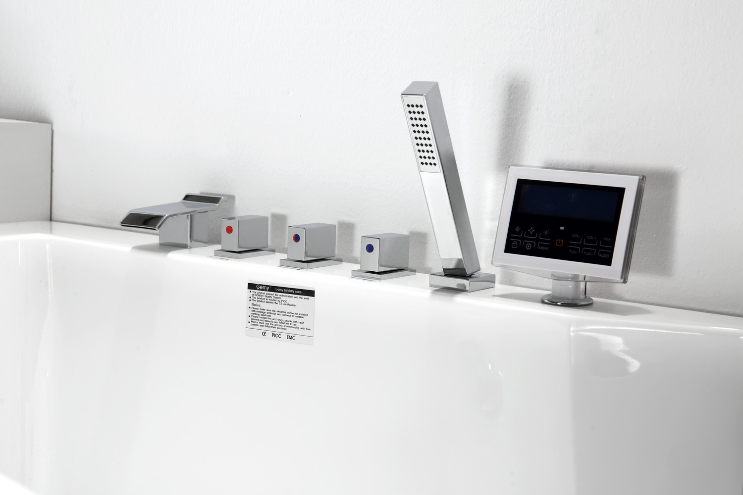 Bảng điều khiển cảm ứng LCD phát ra một lượng ánh sáng nhẹ giúp chúng ta sử dụng dễ dàng hơn. Ánh sáng của bảng điều khiển được chọn lựa cẩn trọng. Ngoài gia tăng độ thẩm mỹ còn mang lại tiện nghi sử dụng tối đa cho khách hàng, Ngay cạnh bên là bộ điều khiển sen tay cùng vòi cấp nước được mạ crom sáng bóng sang trọng, được thiết kế bằng những đường nét góc cạnh, giúp bạn dễ dàng thao tác trong quá trình sử dụng