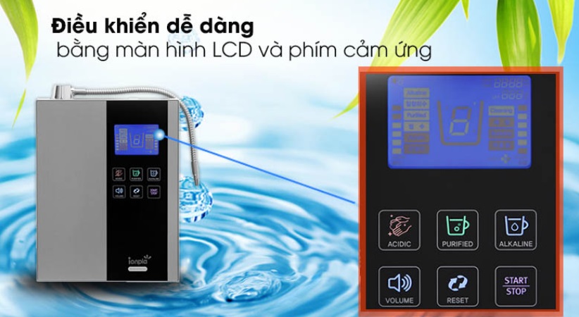 - Máy lọc nước Ion Kiềm IONPIA 5100-7 mang tới cho bạn phong cách sống đẳng cấp nhờ hệ thống điều chỉnh nút cảm biến màn hình LCD. Các phím được minh họa bằng hình ảnh màu sắc đẹp mắt, giúp người dùng phân biệt dễ dàng các loại nước alkaline, nước acid và nước lọc sạch.