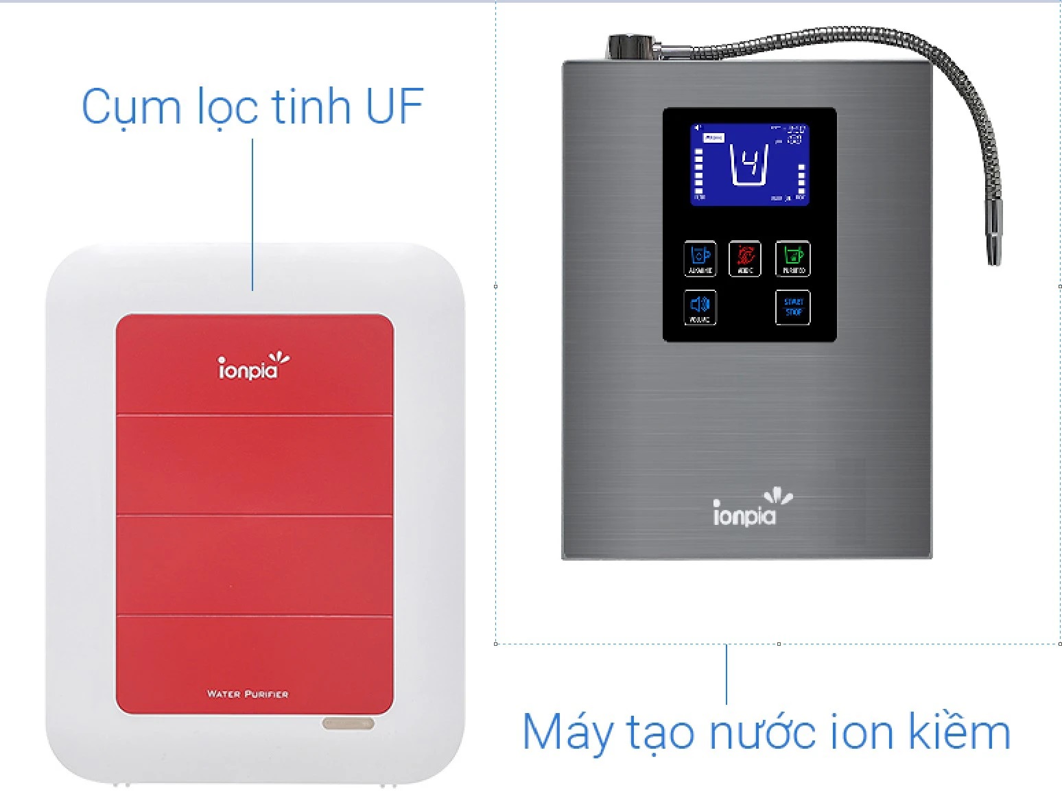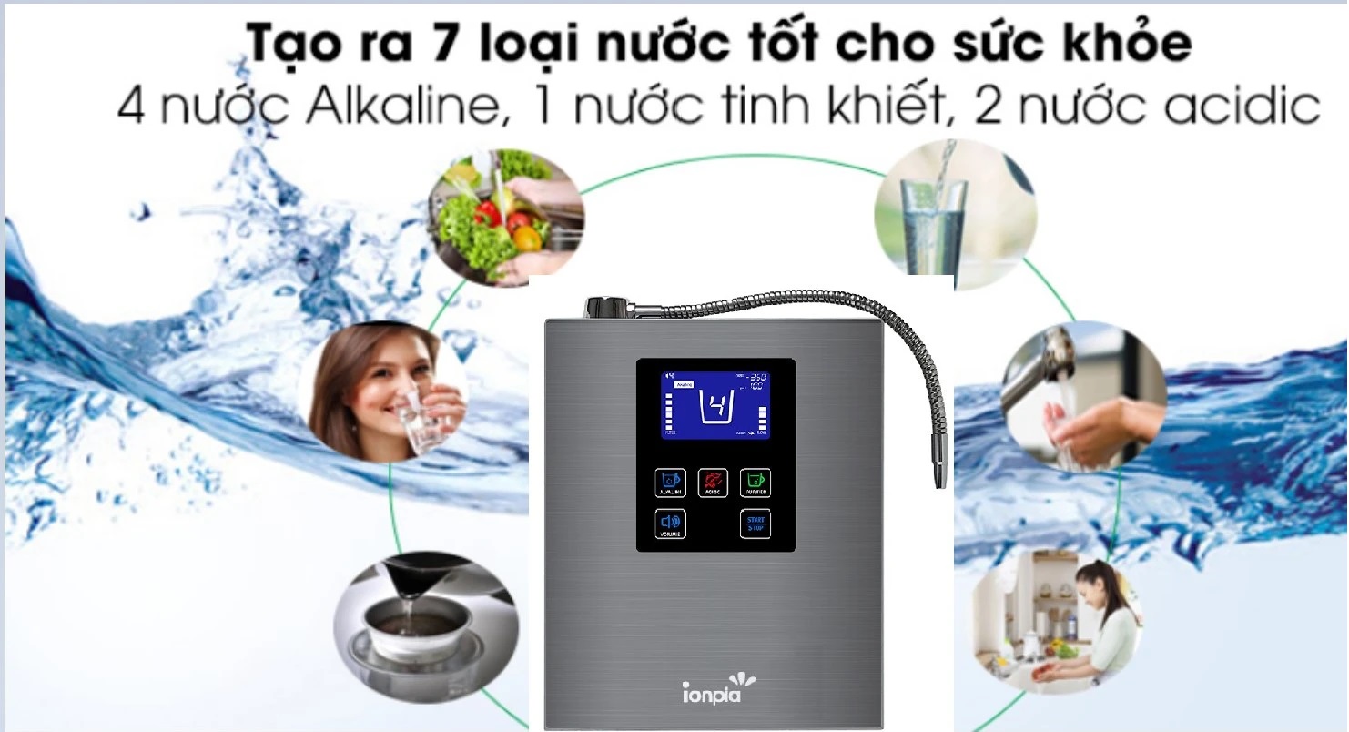 - Máy lọc nước Ion Kiềm IONPIA 5300-7 mang tới cho bạn phong cách sống đẳng cấp nhờ hệ thống điều chỉnh nút cảm biến màn hình LCD. Các phím được minh họa bằng hình ảnh màu sắc đẹp mắt, giúp người dùng phân biệt dễ dàng các loại nước alkaline, nước acid và nước lọc sạch.