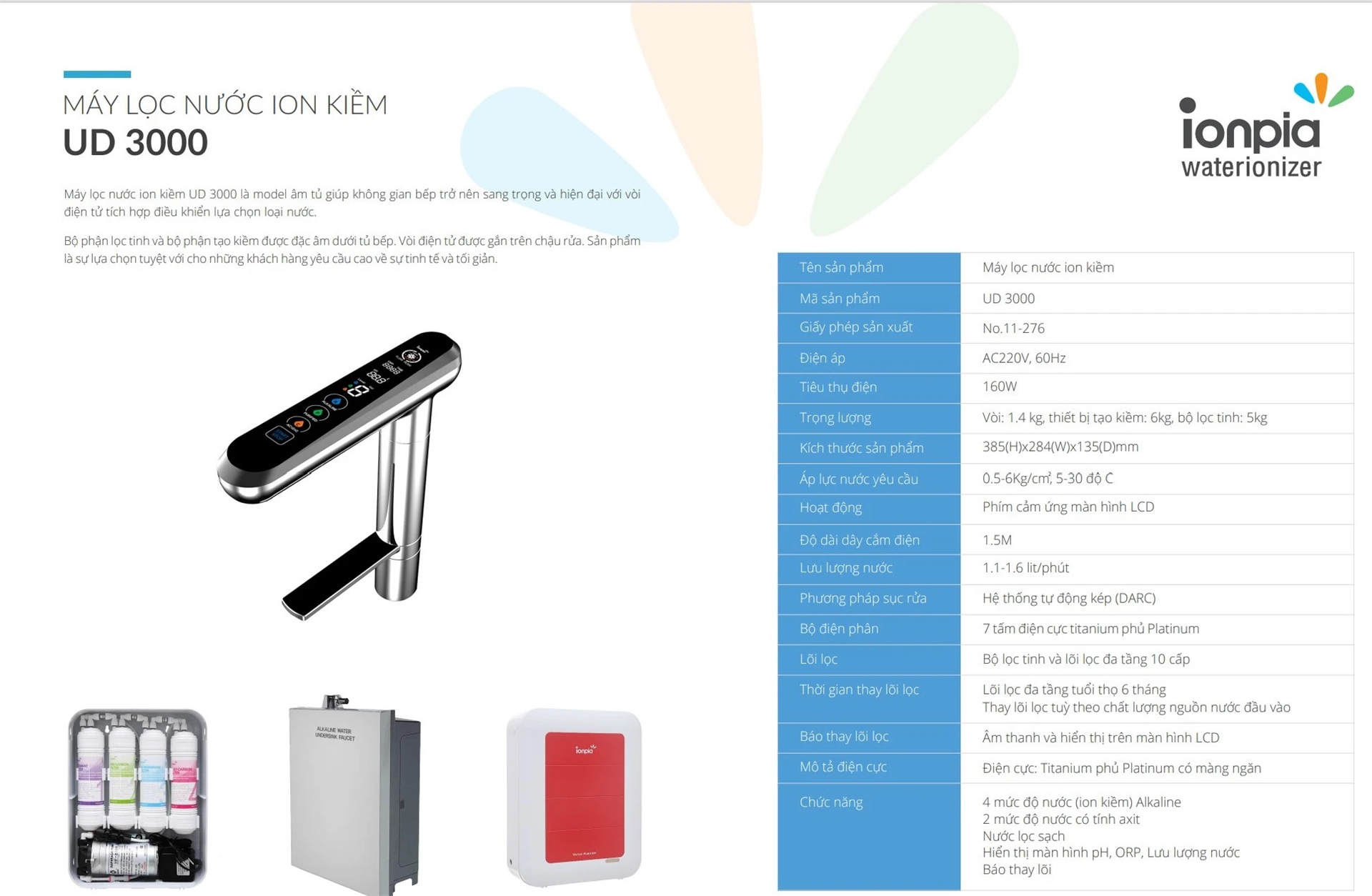 Hình ảnh chi tiết máy lọc nước Ion Kiềm IONPIA UD-3000