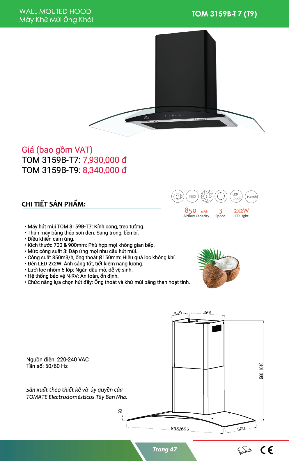 * Công suất máy khử mùi Tomate TOM 3159B-T9