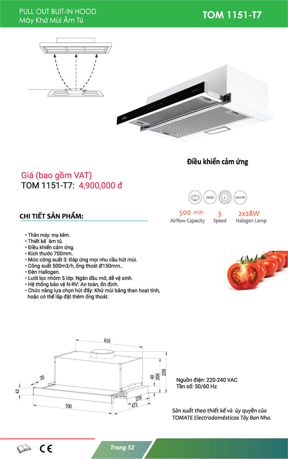 * Công suất máy hút mùi Tomate TOM 1151-T7