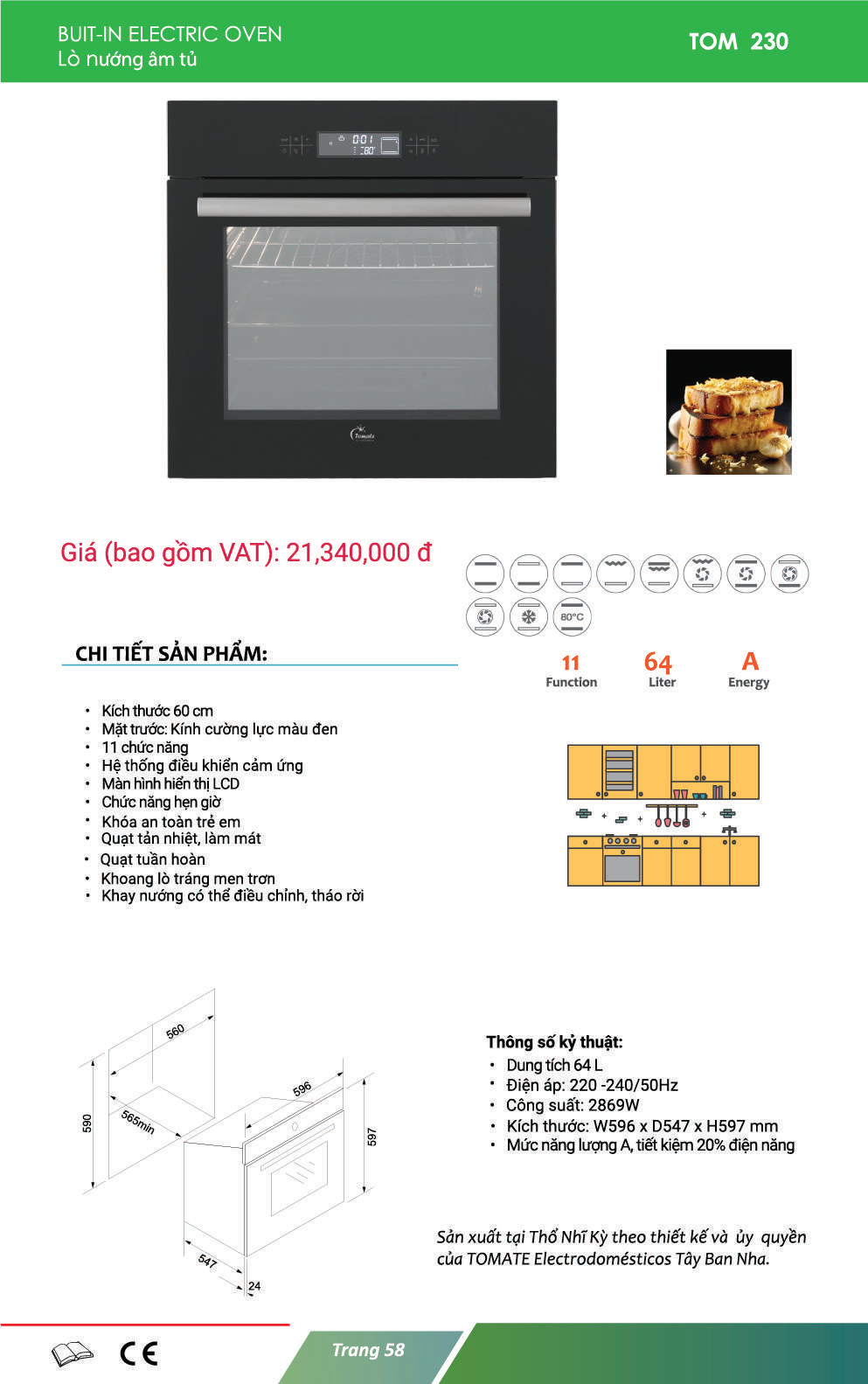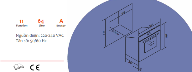 Thông số kỹ thuật lò nướng âm tủ TOMATE TOM 230
