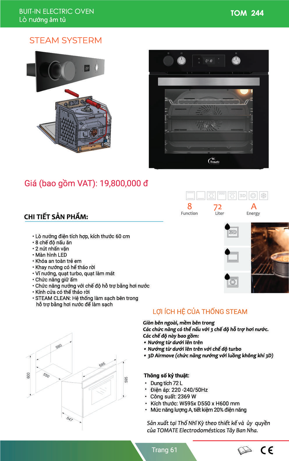 * Lò nướng âm tủ 72 lít Tomate TOM 244