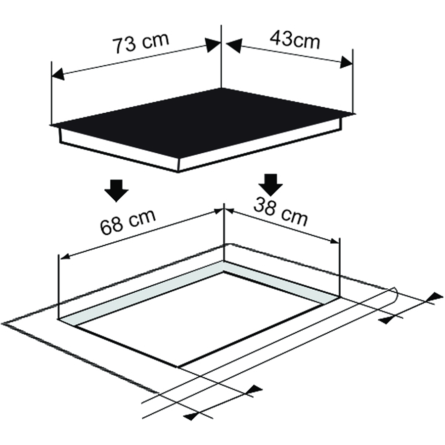 * Kích thước mặt bếp: 730 x 430 (mm)
