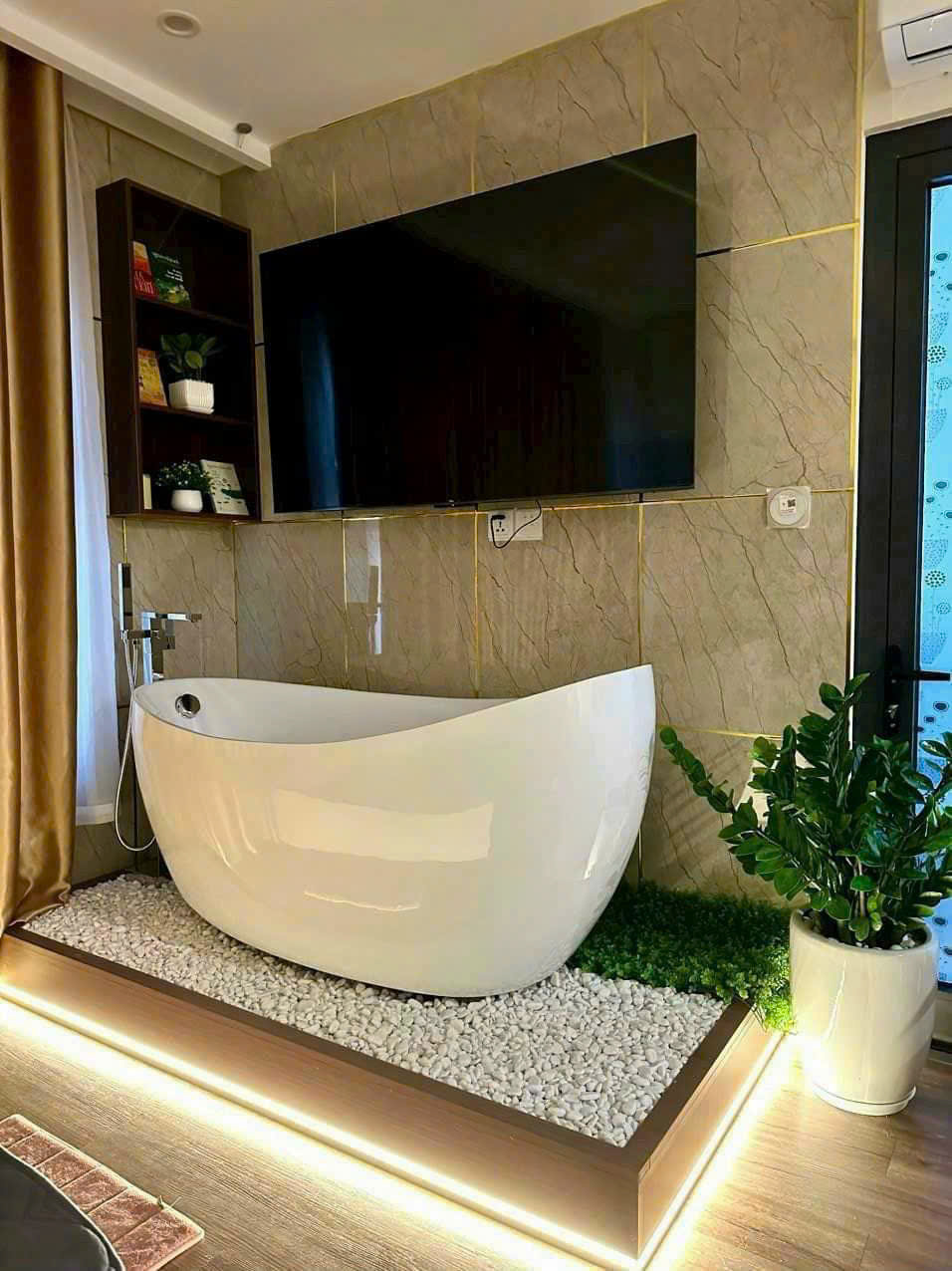 - Loại bồn: Ngâm nguyên khối, đặt sàn hiện đại