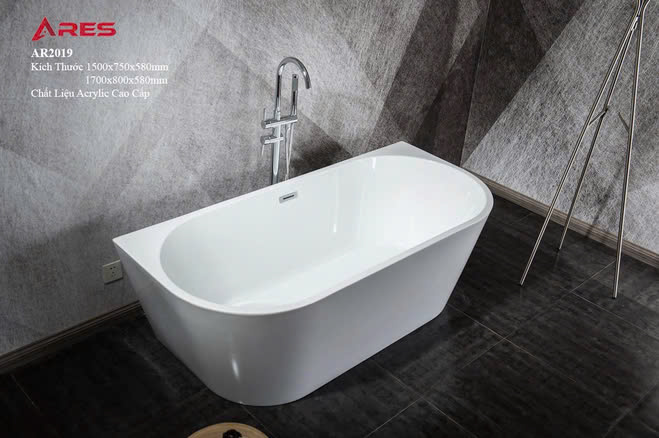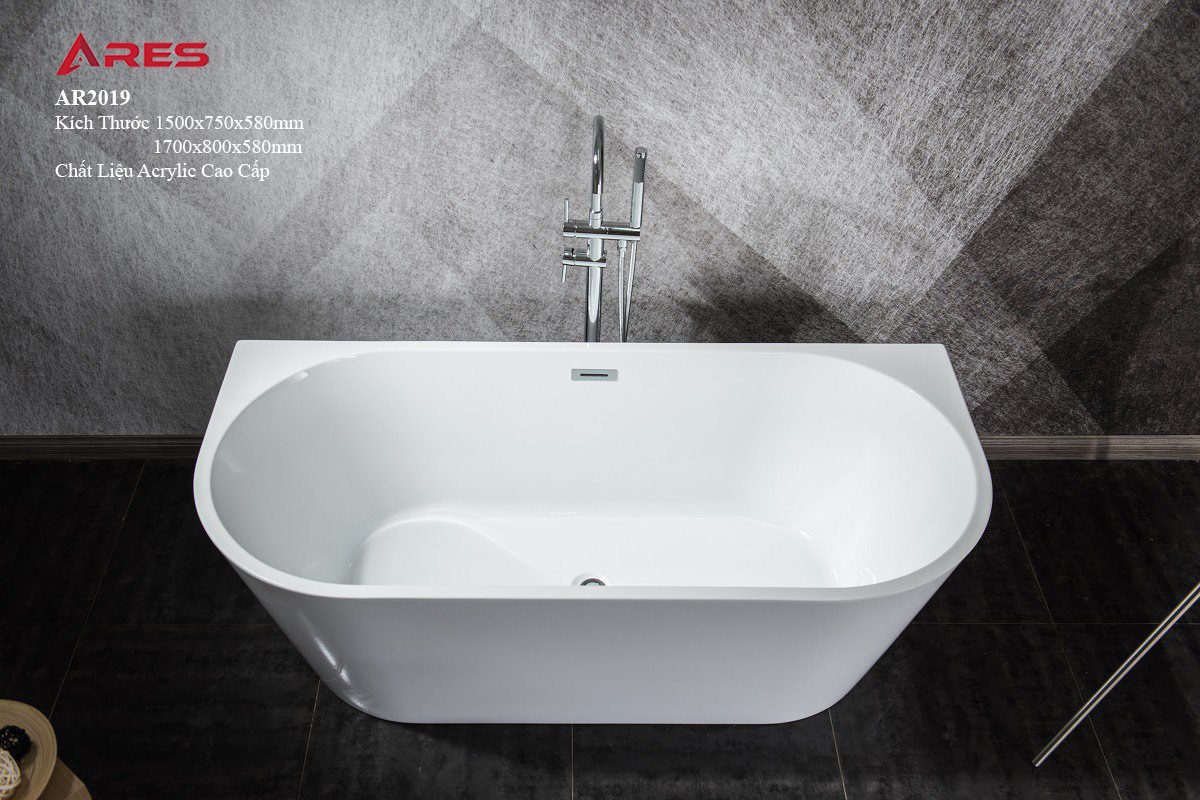 - Bồn tắm ngâm Ares AR-2019 là sản phẩm bồn tắm 3 mặt yếm thiết kế lắp áp tường với 2 kích thước phù hợp với nhiều không gian tắm