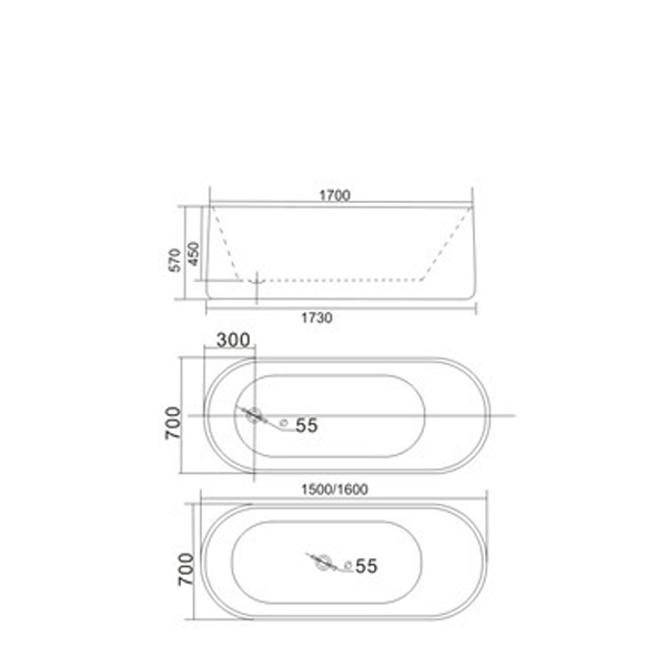 - 1600 x 700 x 570 (mm). Giá bồn không sen vòi: 42.428.102 Vnđ
