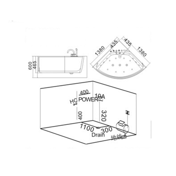 * Mã sản phẩm: Bồn tắm góc massage Rudylux RD-0390
