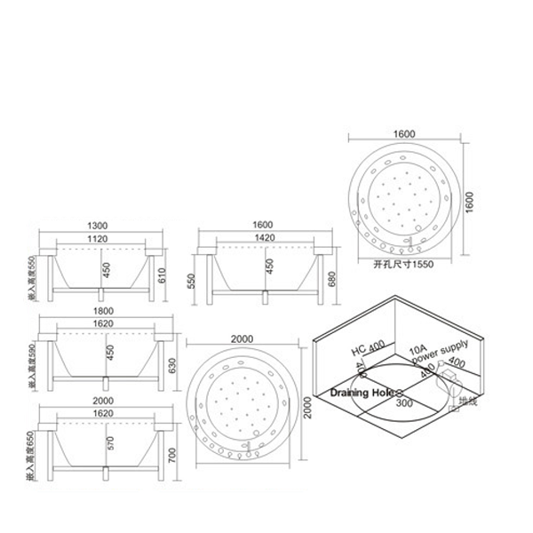 * Kiểu dáng: Hình tròn dạng bồn tắm xây, lòng bồn nằm âm dưới sàn nhà.