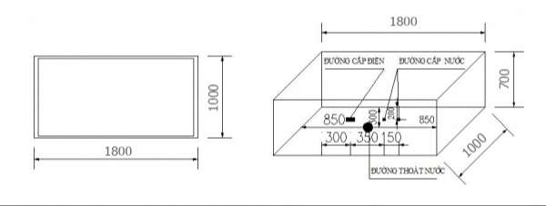 - Kiểu dáng: Bồn độc lập hình chữ nhật yếm bao quanh đặt giữa sàn