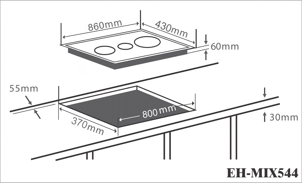* Với kích thước khoét đá: 800 x 370 (mm) phù hợp cho không gian bếp ở Việt Nam có khổ đá bề ngang chỉ 600mm. Chính vì vậy rất thuận tiện cho việc thay thế bếp sau này của gia đình bạn.