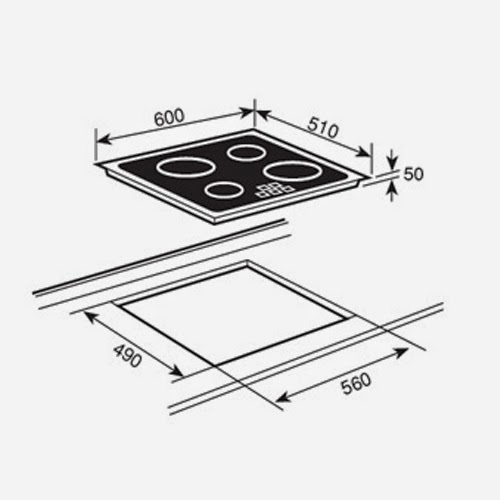 + Kích thước khoét đá : ( Dày x Rộng x Sâu ) : 4,8 x 56 x 49 cm