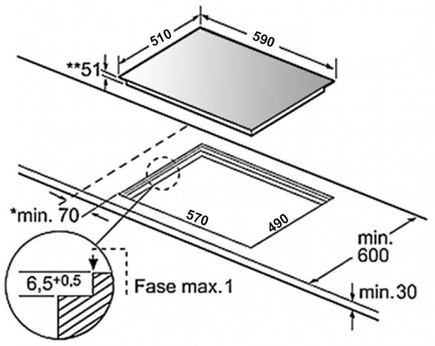 Bản vẽ kỹ thuật của Bếp từ Brauneck BRNI 4001DE