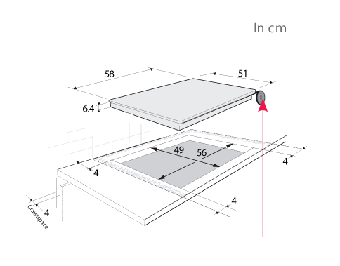 - Kích thước khoét lỗ(cao x rộng x sâu cm) : 6.4x56x49