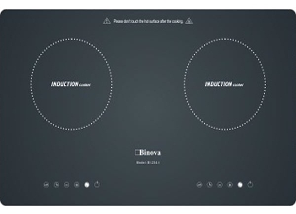 Bếp từ Binova BI-234-I được thiết kế để lắp âm hoặc lắp dương bàn bếp, gồm có hai vùng nấu từ sử dụng nguồn điện dân dụng điện áp 220V.