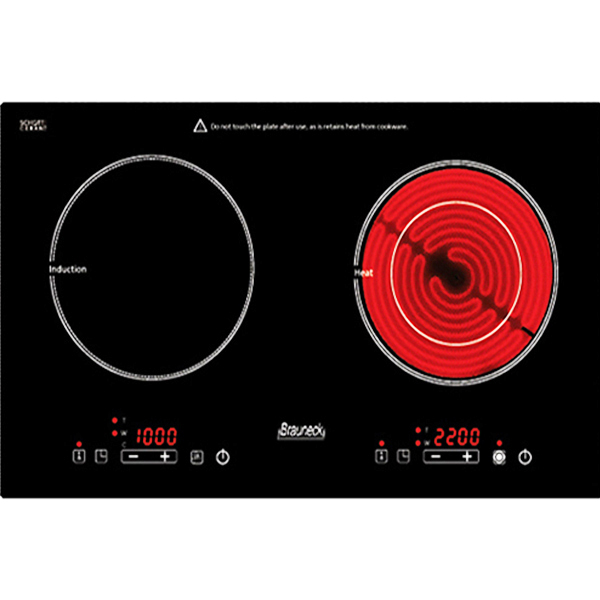 - Mẫu bếp điện từ Brauneck nhập khẩu này sử dụng mặt kính chịu nhiệt Schott Ceran. Khả năng chịu nhiệt lên đến 1000 độ C, chịu sốc nhiệt đến 800 độ C ( trong khi nhiệt độ của bếp chỉ cao nhất là 240 độ C nên độ an toàn của mặt kính). Công suất đạt mức cao nhất của bếp của bếp điện là 2200w.