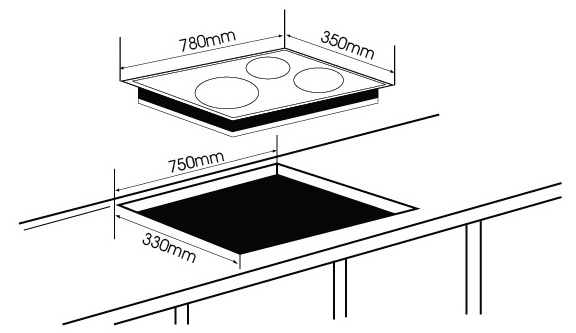Kích thước khoét đá: 750 x 330mm