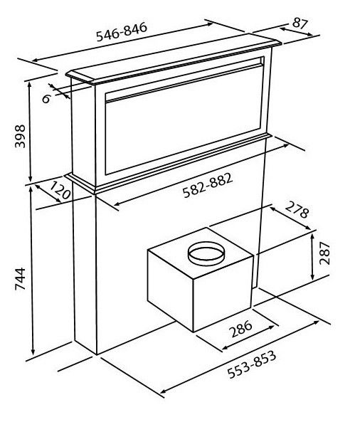 -kích thước: Máy có kích thước là 882 mm phù hợp với nhiều không gian tủ bếp do được thiết kế tương đương với chiều dài của mặt bếp nấu. Với kiểu dáng nhỏ gọn của máy, bạn có thể tận dụng không gian trống bên trên tủ bếp để đóng thêm ngăn tủ đựng đồ giúp cho không gian bếp ngăn nắp và gọn gàng hơn.