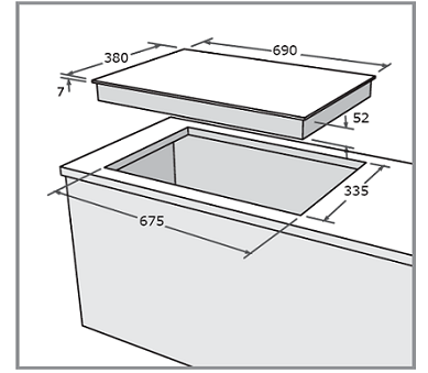 - Kích thước khoét đá: 675 X 335 (mm)