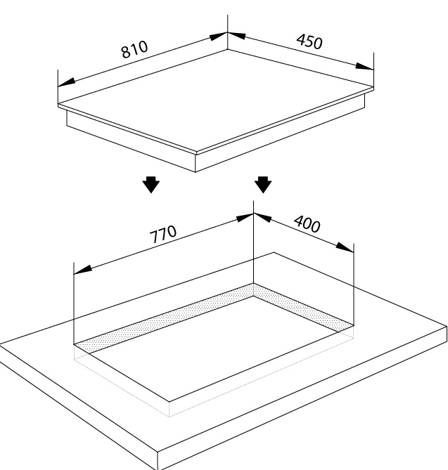 Kích thước khoét đá | 770x400mm |