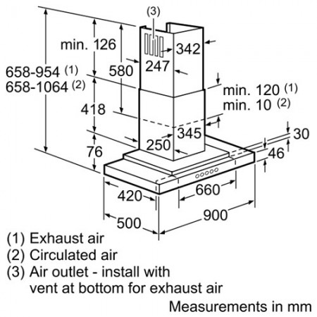 - Tính năng độc đáo: Máy hút mùi Bosch được trang bị bộ lọc mỡ ,hút và khử mùi trực tiếp đẩy ra bằng đường ống, lưới lọc mỡ nhiều lớp , với chế độ hút đẩy trực tiếp ra bên ngoài bạn cần chuẩn bị đường thoát trực tiếp hoặc hộp kỹ thuật mà không cần dùng than. Sử dụng chế độ này bạn có thể tiết kiệm 1 phần chi phí thay than đồng thời đẩy công suất hút lên cao hơn. Không khí khi thoát ra ngoài mang theo 1 phần độ ồn, bụi bẩn cùng dầu mỡ . Đường ống có kích thước phù hợp với hút mùi âm tủ là phi 90-110mm nếu sử dụng phi lớn hơn bạn cần thêm cút nối.