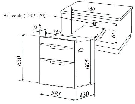 - Kích thước: W595 x D453 x H630 mm