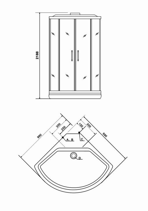- Kích thước: 900 x 900 x 2180 mm