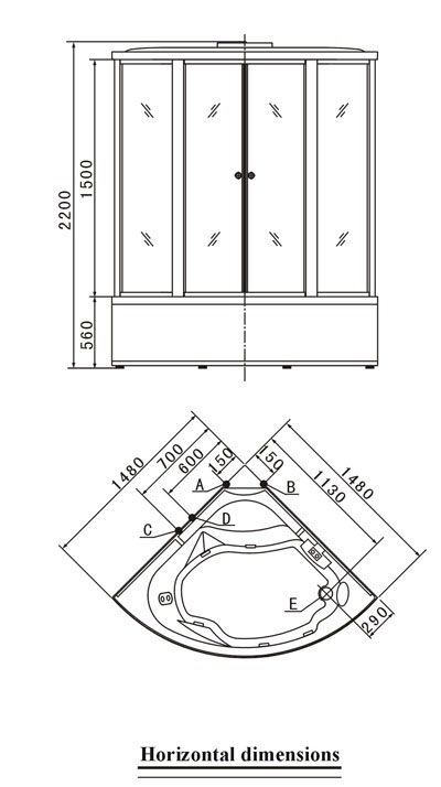+ Kích thước : 1480 x 1480 x 2160 mm