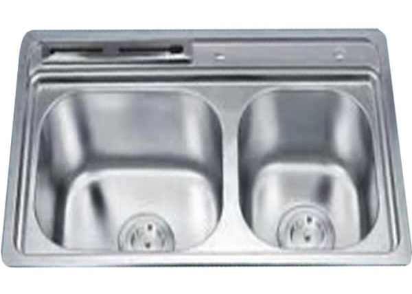 Đây là mẫu chậu rửa hai hố bao gồm các phụ kiện đi kèm như: rỏ rác, xiphong thoát nước, đặc điểm được đánh giá cao ở mẫu chậu này không chỉ là chất liệu Inox mà cả ở chất liệu nhựa cao cấp làm xi phông thoát nước, đây là chất liệu nhựa có khả năng chịu nhiệt rất cao, đáp ứng được yêu cầu rửa bằng nước nóng hay dầu mỡ sôi đổ vào cũng không làm ảnh hưởng đến xi phông thoát nước.