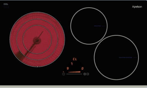 * Bếp điện từ Apelson AMT-377 có cấu tạo 3 bếp được thiết kế đồng đều cho phù hợp cho việc nấu ăn với các loại nồi khác nhau - bếp điện hồng ngoại được thiết kế đặc biệt hơn đó chính là có 3 vòng nhiệt có thể điều chỉnh to nhỏ khi nấu.