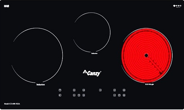 Bếp điện từ được chọn lựa nhiều nhất hiện nay bởi khả năng tiết kiệm điện năng, an toàn và dễ vệ sinh. Hãng Canzy thương hiệu chuyên sản xuất bếp điện từ chính hãng nổi tiếng đến từ Ý đã mang tới cho người tiêu dùng Việt những mẫu bếp chất lượng với giá cả phải chăng . Trong đó Bếp điện từ Canzy 6003-GIA là sản phẩm điển hình của hãng. Với thiết kế hình chữ nhật bếp điện từ Canzy này gồm 3 vùng nấu là sự kết hợp giữa 1 bếp điện và 2 bếp từ được đặt dải đều mang đến sự tiện dụng cho người dùng. Đun nấu nhanh chóng, thân thiện với môi trường, an toàn cho sức khỏe, tiết kiệm điện năng cho gia đình bạn.