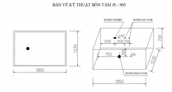 * Thông số liên quan đến kỹ thuật lắp đặt của bồn tắm govern JS-903: