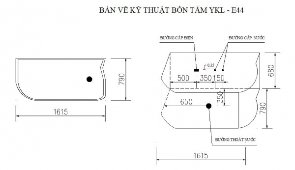 * Thông tin liên quan đến bồn kỹ thuật lắp đặt bồn tắm govern YKL-E44: