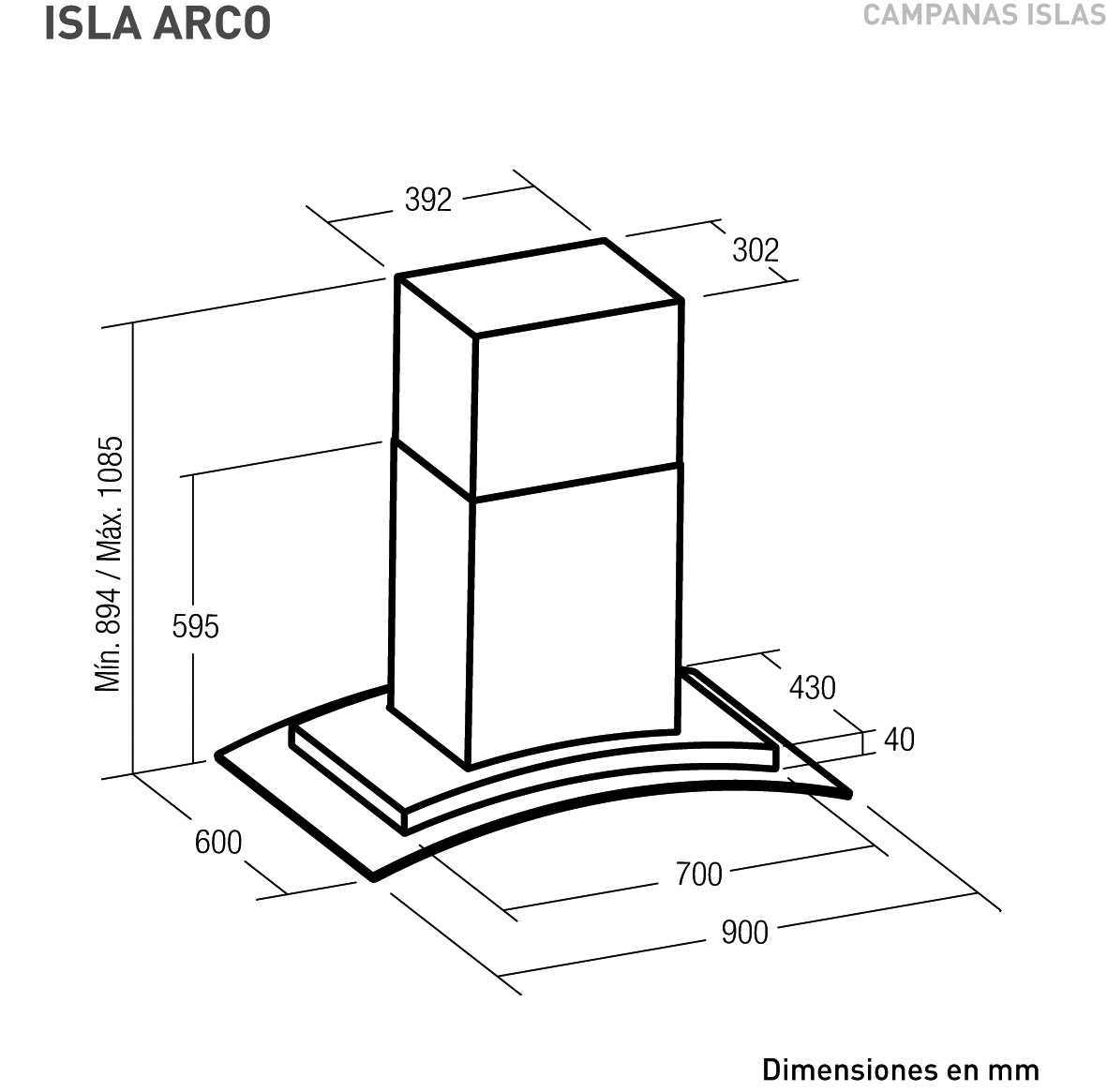 Hình ảnh Máy hút mùi ISLA ARCO BK