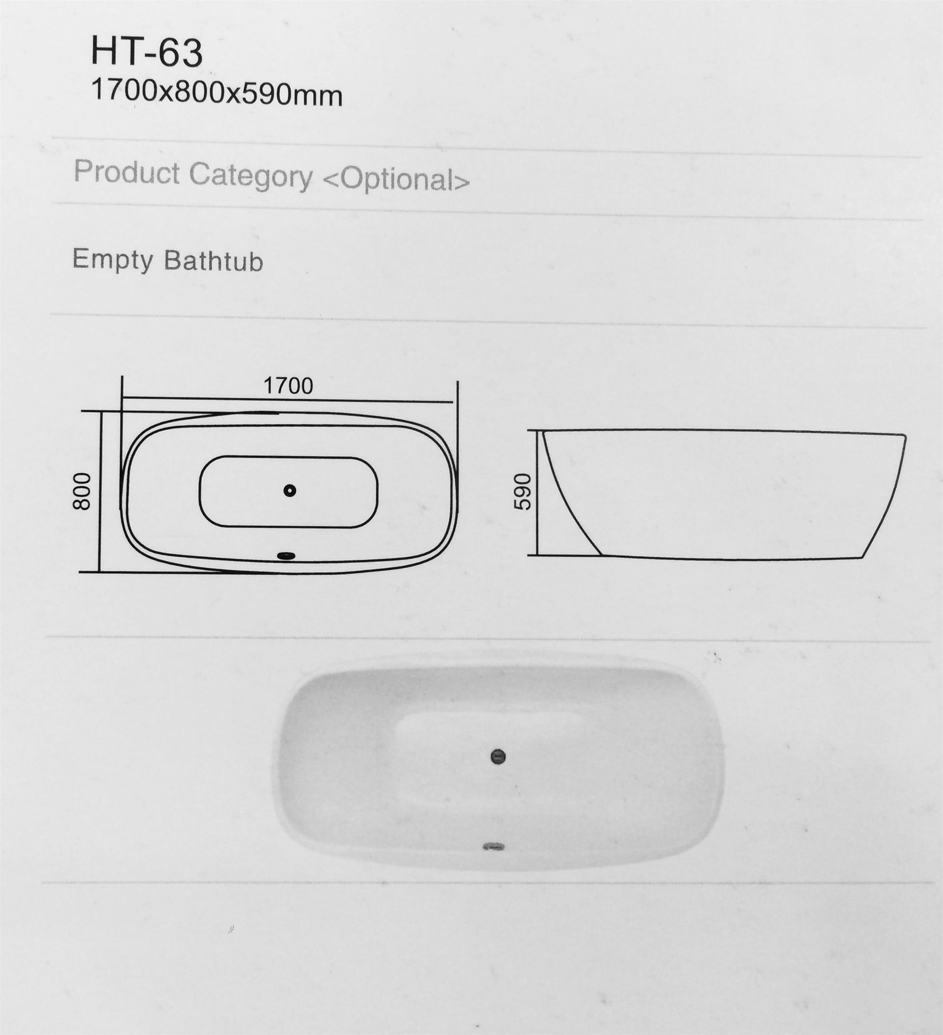 Với những gia đình có không gian phòng tắm rộng thì đây sẽ là một mẫu bồn tắm mà gia đình bạn sẽ muốn được sở hữu. Bồn có thiết kế kiểu dáng nằm , gắn độc lập cùng kích thước 1700x800x590mm, kích thước này của bồn sẽ giúp bạn ngâm mình thoải mái trong bồn. Bồn tắm Daros HT-63 được làm từ chất liệu Acrylic trắng một chất liệu nhựa nhập khẩu cao cấp có độ bền cao và an toàn cho người sử dụng.