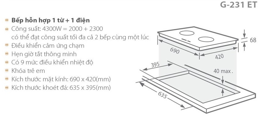 Bếp điện từ Giovani G-231ET còn đem đến cho người dùng những tính năng ưu Việt và tính năng an toàn cho công việc nấu ăn của người nội trợ trở lên dễ dàng và yên tâm hơn.