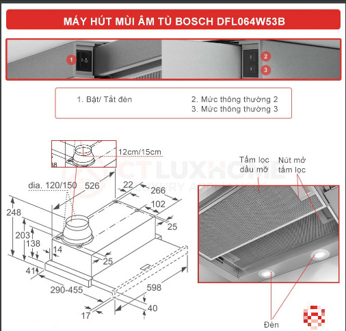 Đánh giá chi tiết về máy hút mùi âm tủ Bosch DFL064W53B