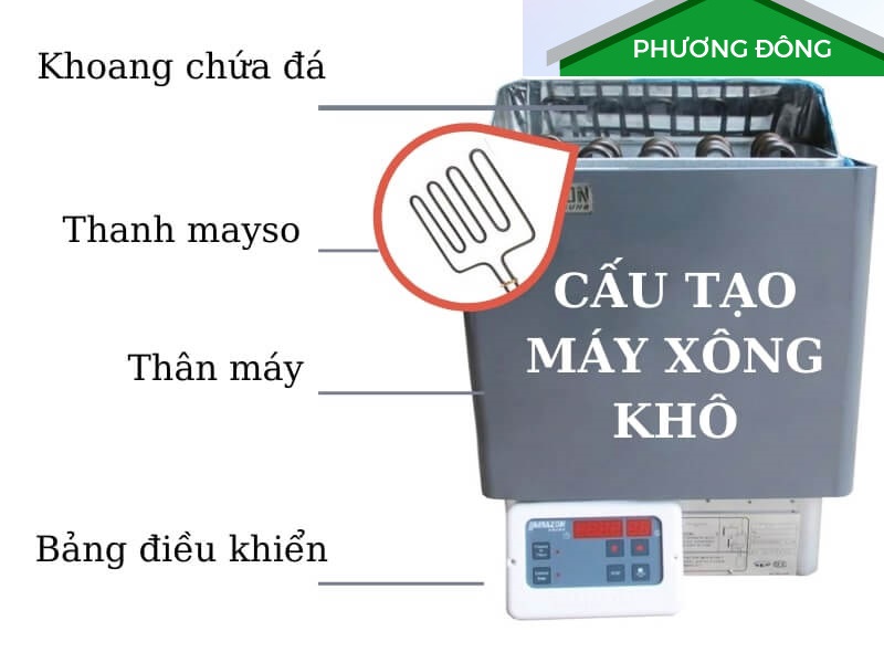 Cấu tạo của máy xông hơi khô bao gồm các phần cơ bản như sau: