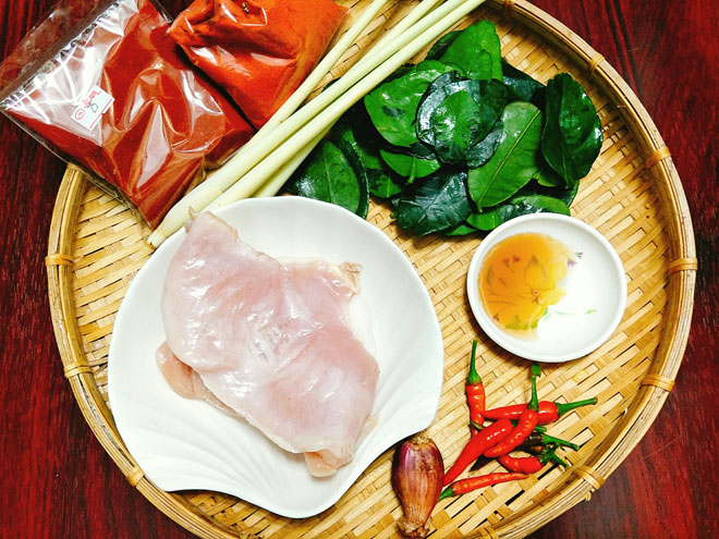 • Lá chanh: Rửa sạch, để ráo, một nửa thái sợi mỏng, nửa còn lại để nguyên.
