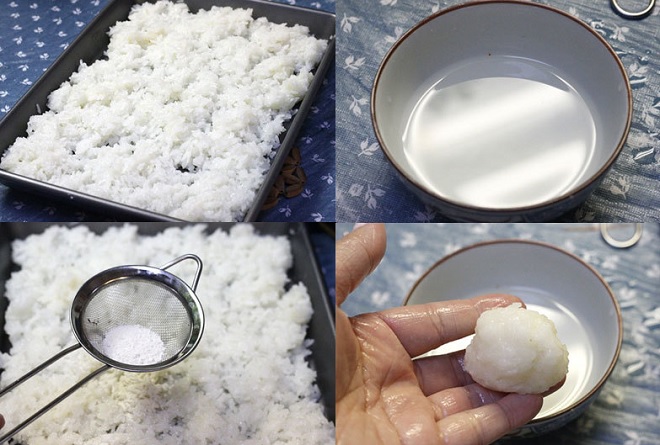 Trải một lớp màng bọc thực phẩm lên mâm lớn, cho gạo nếp đã nấu chín lên mâm và để nguội hoàn toàn. Khi gạo đã nguội, rải đều men đã nghiền lên trên và trộn thật kỹ. Sau đó, vo nếp đã trộn men thành từng viên nhỏ. Lưu ý không trộn men khi gạo còn nóng, vì nhiệt độ cao sẽ làm hỏng men.